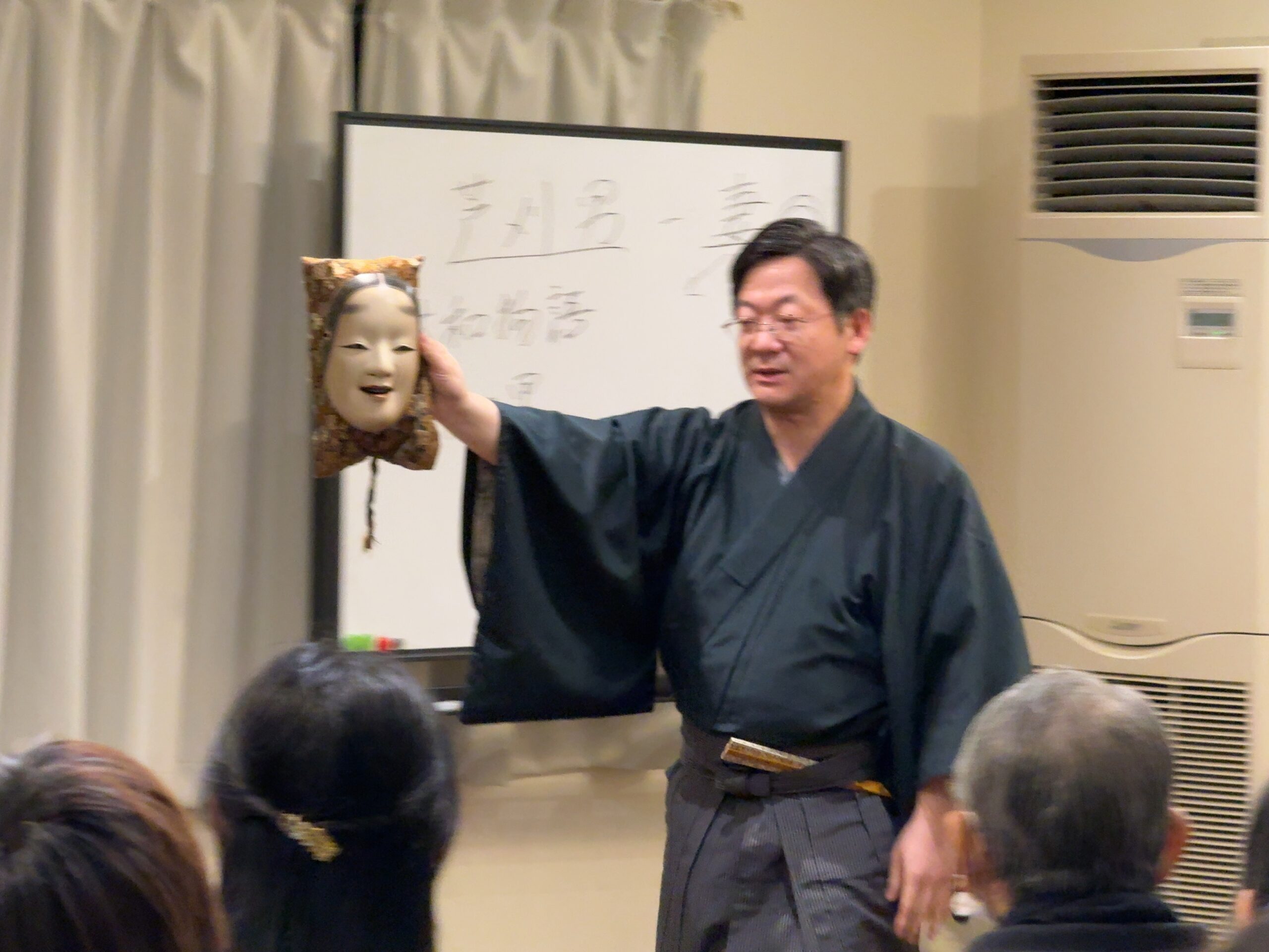 シテとツレが出会う場面での、直面(ひためん※能面をかけないこと)の難しさを聞いて、確かにそうだなと思うと共に演じる側のお話も聞け、実際に見てみたいと思いました。
