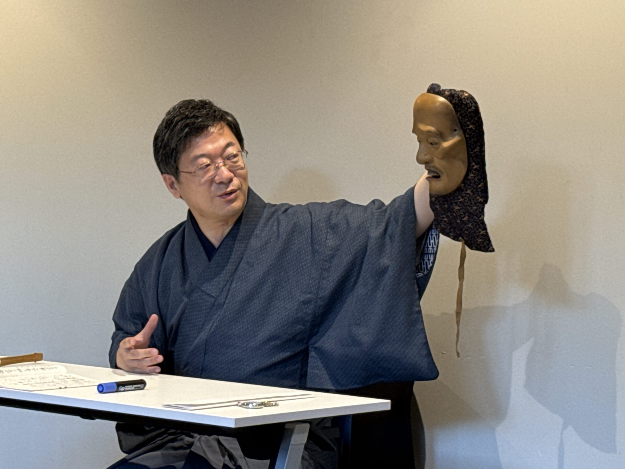まずは解説…先生は始まる前に「今日はじっくりしてしまうと時間がなくなってしまいます」と言いつつ実演もしっかりと。やはりご自身のシテ公演が迫っていることもあるのかもしれません。