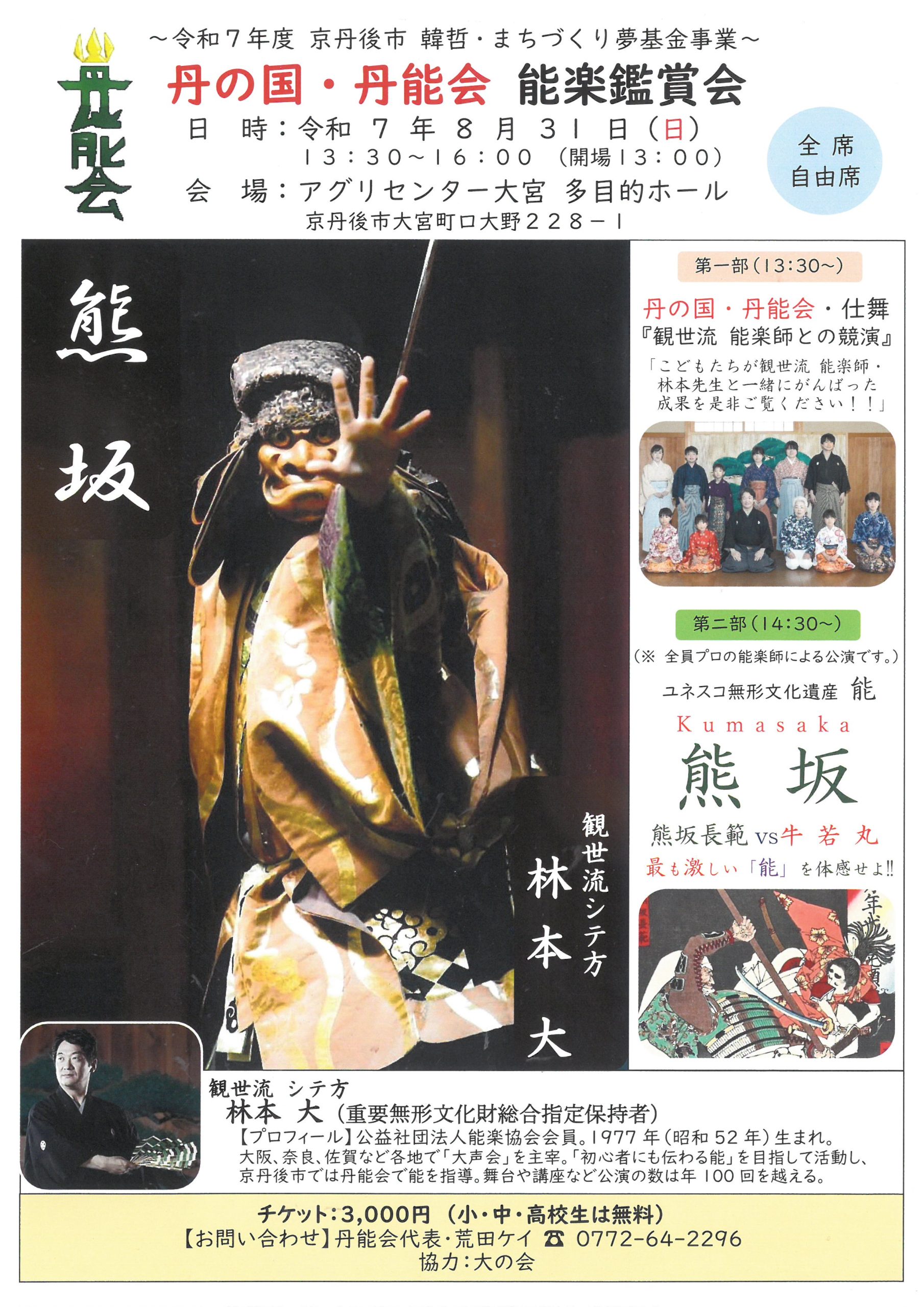 令和七年度京丹後市 韓哲・まちづくり夢基金事業の助成を頂戴し、ありがたくもこの地で能楽の公演が実現されます。
