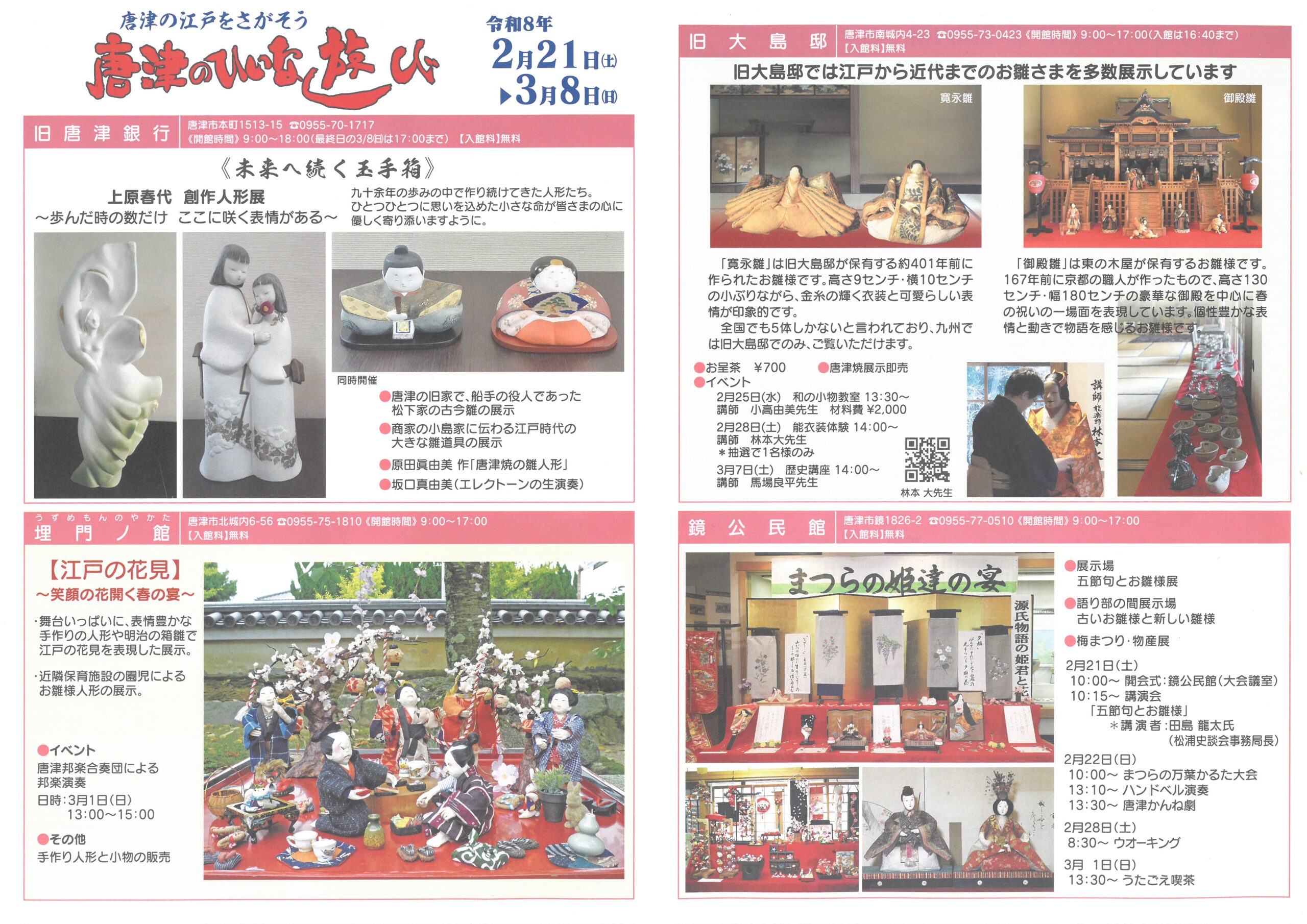 毎年恒例となりました、ひな祭りの時期に、唐津の風情漂う場所で、能のワークショップを行います。最後に能の装束の着付けもお見せします。装束を着る事ができるのは残念ながらお一人だけですが、皆様是非能のお話しを聴きにいらしてください。