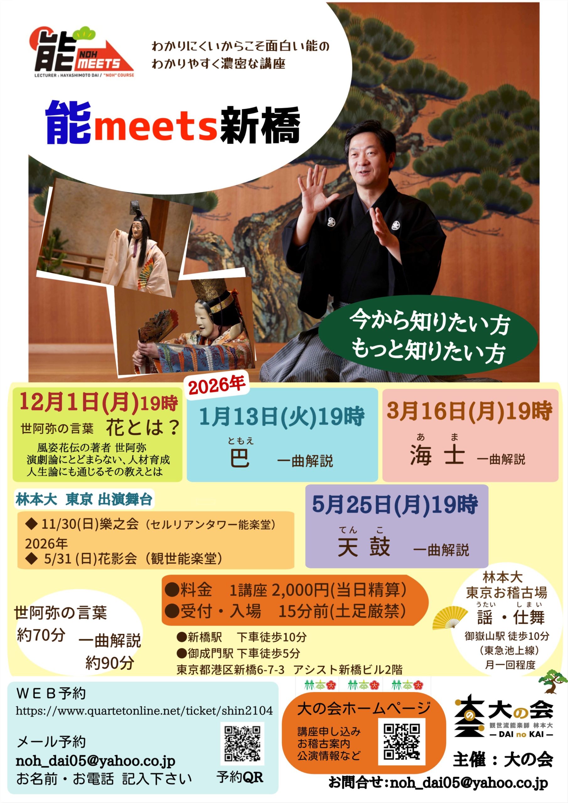 能の基礎やルールも交えてお伝えしますので、初心者の方もお気軽にご参加いただけます。