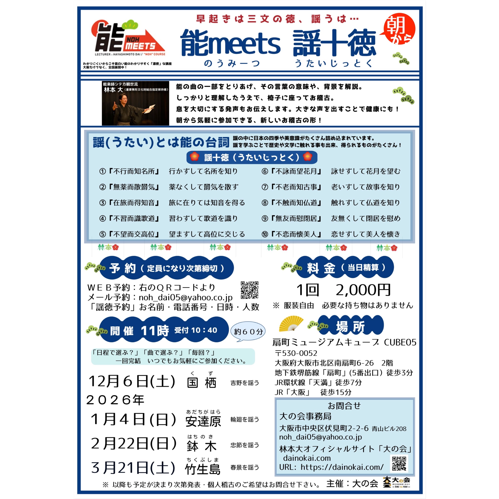 朝から声を出すことが大変気持ちがいいと好評な能meets謡十徳